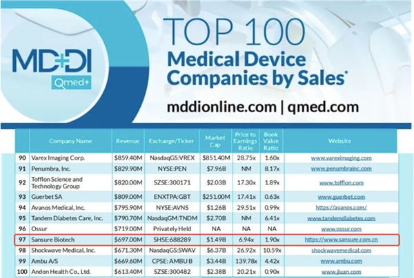 近日,医疗器械行业权威网站Medical Device+Diagnostic Industry(MD+DI)发布了2023年全球医疗器械企业TOP100榜单。leyu.乐鱼生物连续两年上榜全球百强,也是此次榜单唯二主营业务是体外诊断的中国企业。